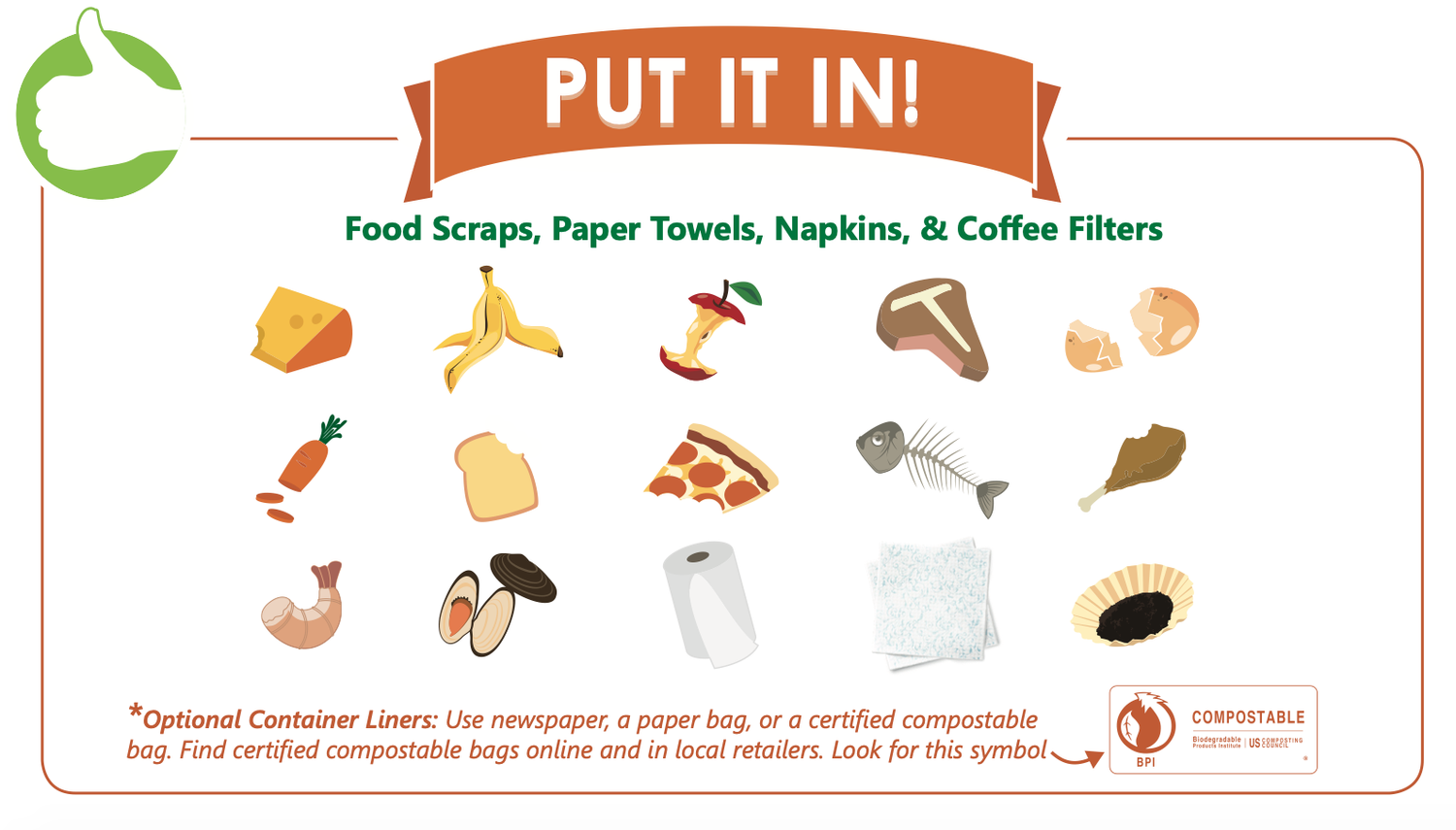 Keep food discards out of the trash by composting produce and plant matter at home. Use curbside yard/food waste bins to compost food, plants, and yard debris.
